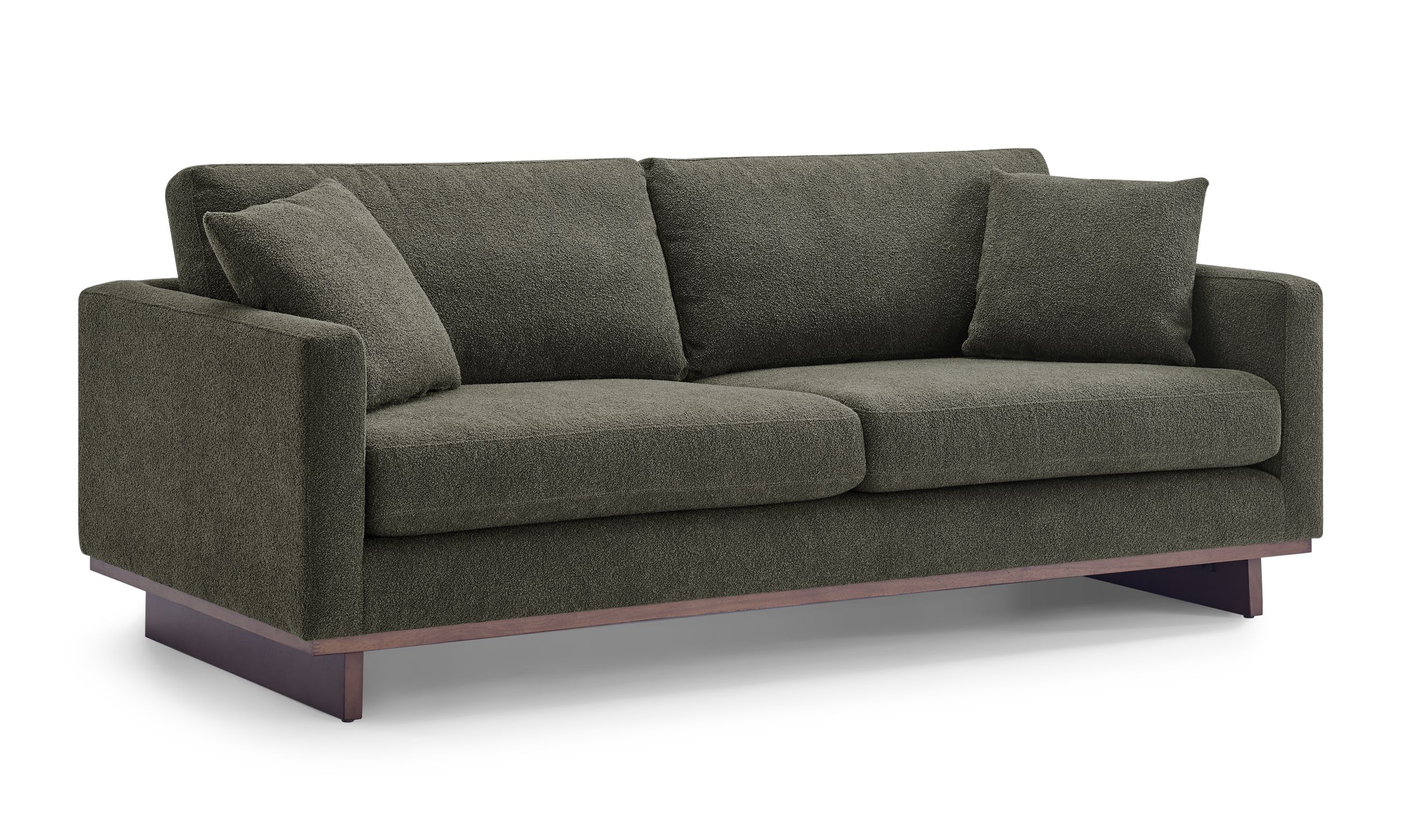 Stocked in Razzle Cypress. Toss in Alpaca Fawn. Sectional available available as sofa and left arm apartment sofa (as shown).